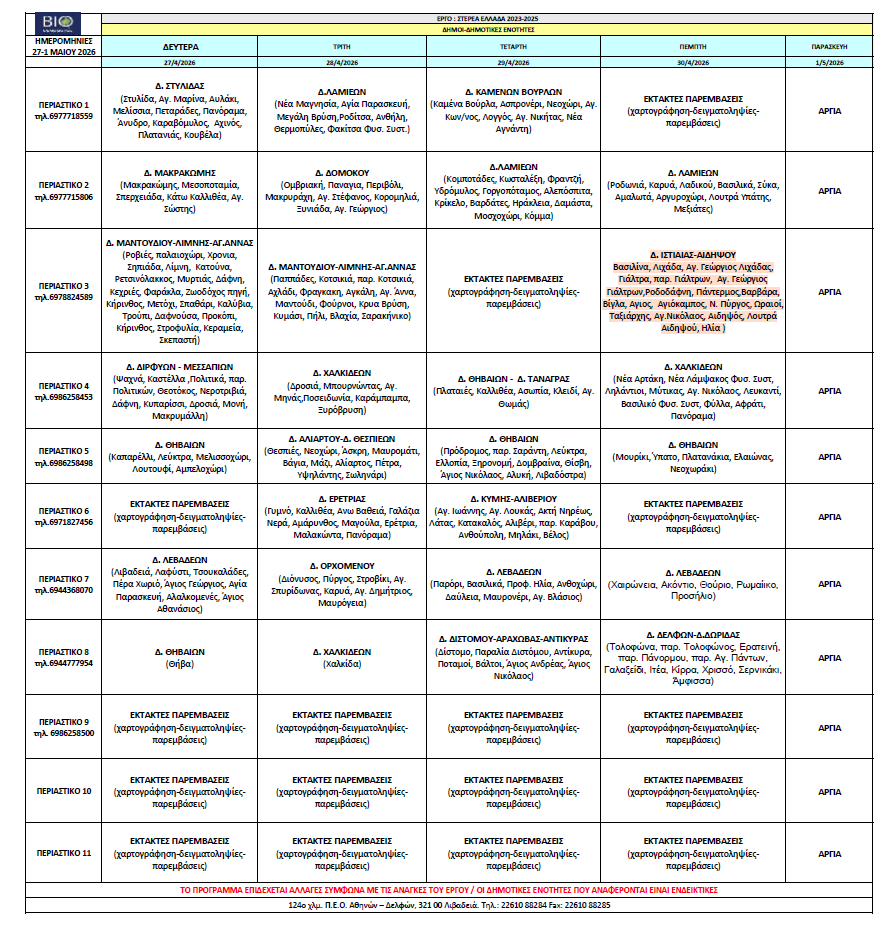 ΠΡΟΓΡΑΜΜΑ ΣΥΝΕΡΓΕΙΩΝ ΚΟΥΝΟΥΠΟΚΤΟΝΙΑΣ ΠΕΡΙΟΔΟΥ 27 ΑΠΡΙΛΙΟΥ -1 ΜΑΪΟΥ 2026 27 Απριλίου 2026 Νέα Μοιρασέ το Tweet Share Plus one Pin It Διαβάστε επίσης ΚΟΡΦΙΑΤΕΙΑ 2024, ΙΣΤΙΑΙΑ 10, 11 & 12 ΜΑΪΟΥ ΨΕΚΑΣΜΟΙ ΑΠΟ 11/07/2022 ΕΩΣ 15/07/2022 ΠΡΟΓΡΑΜΜΑ ΨΕΚΑΣΜΩΝ 29-03-2021 ΕΩΣ 02-04-2021
